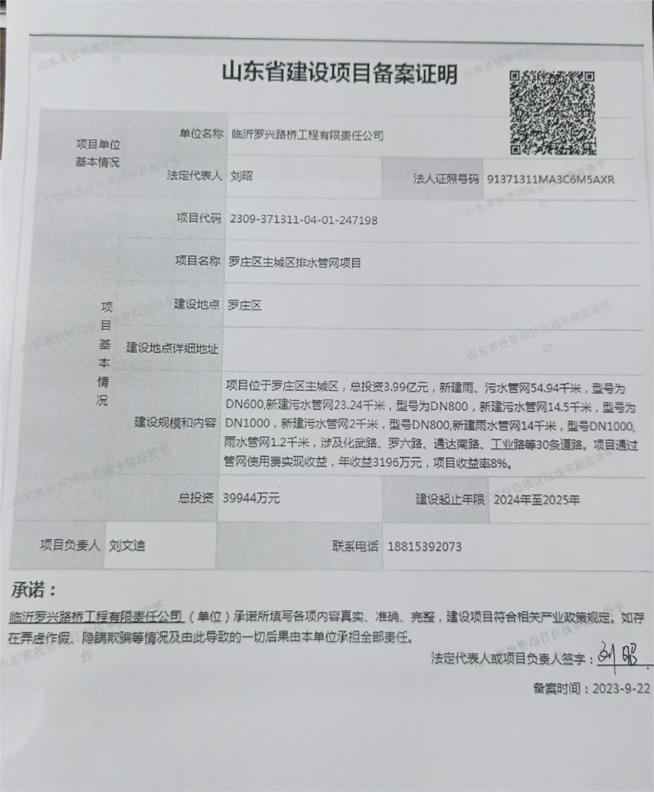 山东省临沂市罗庄区主城区4亿排水管网项目融资